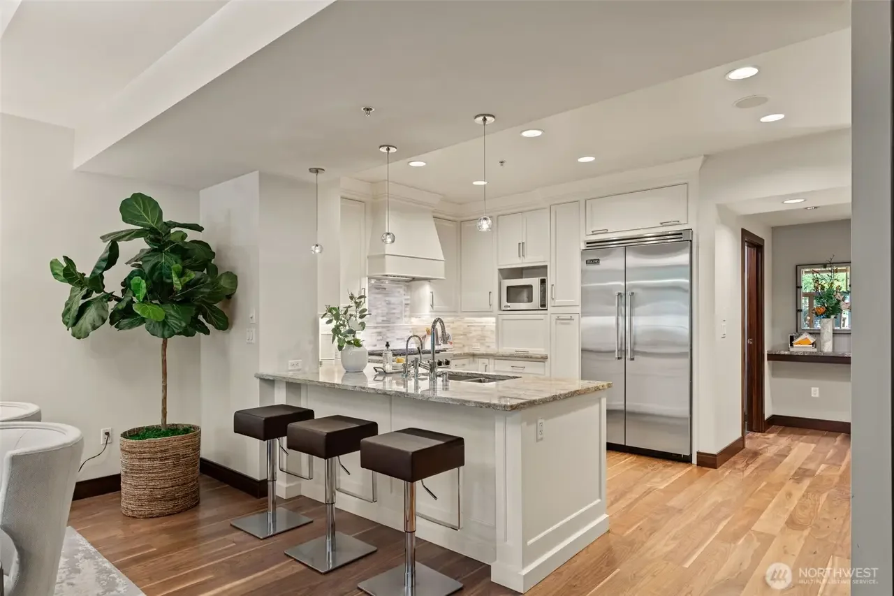 Live at the center of it all in this elegant downtown Bellevue townhome. Designed for comfort and sophistication, it offers a light-filled great room with high ceilings, custom window treatments and automated blinds, and a gourmet kitchen with Viking appliances. Entertain on your private patio or retreat to the primary suite with marble finishes and a custom walk-in closet. Additional highlights include a home office, a private elevator bringing you directly into the kitchen from your own 2-car garage, refinished hardwood floors and a brand new heat pump. Premium amenities include 24-hr concierge, owners lounge, fitness center and spa. Just steps to world-class shopping, restaurants, parks, and all Bellevue has to offer!
