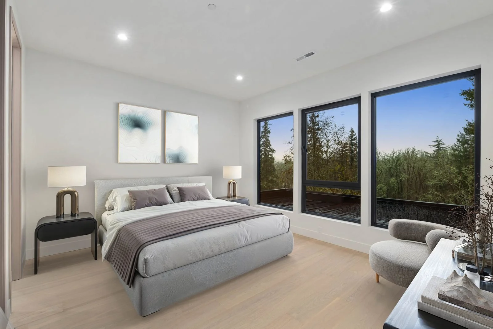 Custom residence in The Nines at Camas Meadows offering a lifestyle shaped by light, space, & direct access to Camas Meadows Golf Course from your backyard. Modern architecture meets warm textures as 21.5 ft ceilings, floating stairs, & triple pane windows create an elevated atmosphere. The Quartzite Patagonia kitchen w/ Bertazzoni suite anchors the main level, while the primary suite lives like a private retreat w/ floating tub, heated floors, & covered patio access. The lower level adds a wine wall, sauna, steam room, & 8 ft doors opening to the yard, plus a golf cart garage for instant course access. A rare blend of design, comfort, & resort-style living minutes from Vancouver & Portland. A home that defines elevated Camas living!